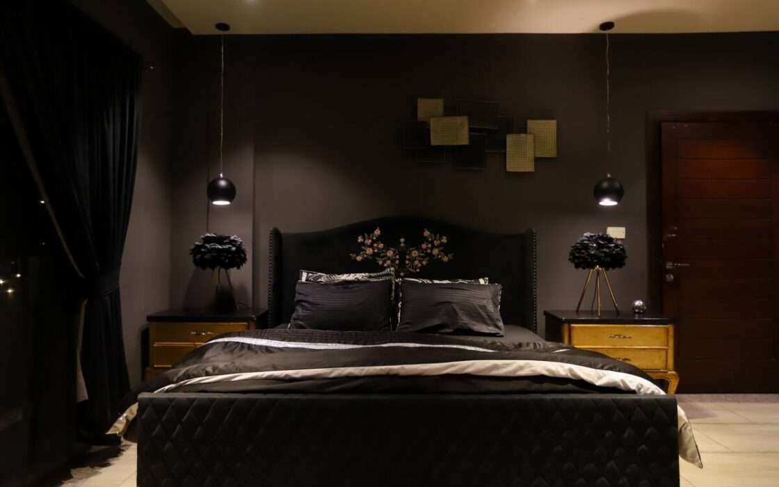 Modern 1BHK condo with sleek interiors, moody tones, and easy self check-in.