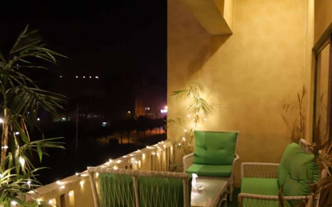Welcome to The Flamingo, an ultra-luxurious 1BHK apt in Bahria Town, Islamabad. It is 1700 sqft in size, featuring chic design with flamingo accents, it includes a huge spacious living area with a 75″ TV, 10-seater sofas, a fully equipped kitchen, and two bathrooms. Enjoy the large patio balcony with outdoor dining. Perfect for those seeking style and comfort.The place has a stunning 75-inch Home Theatre TV, perfect for entertainment. It has a comfortable bedroom, ensuring a peaceful sleep.